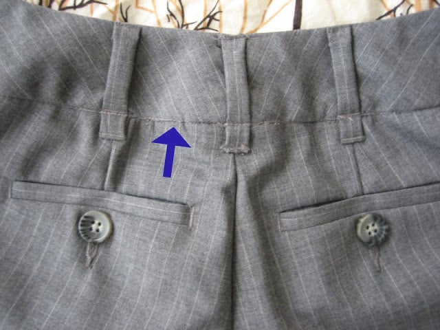Signs of shoddiness: This is a pair of Banana Republic Martin pants, size 0 (this must have been before I knew they made 00). I needed a good 1.5 inches taken in, yet the tailor insisted on doing it the first method!