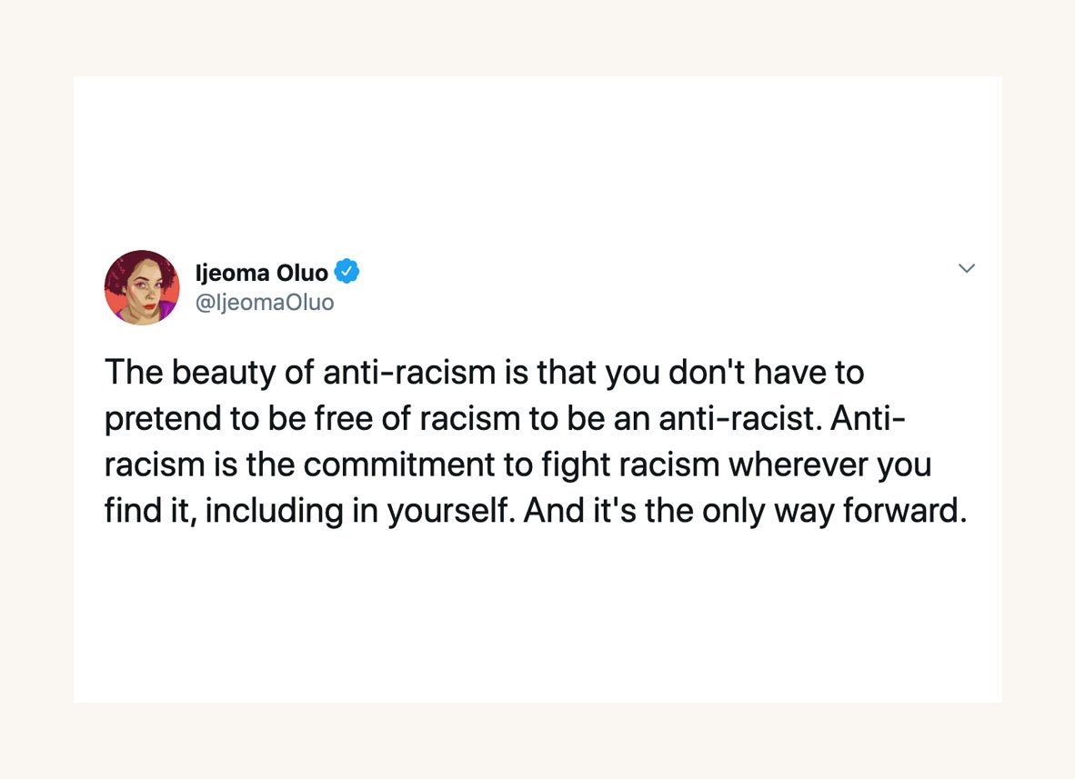 While this carousel post on “How to be Actively Antiracist” from Good Good Good Co. has been shared a lot, it’s worth mentioning again. It includes several podcasts, movies, shows, and books that dive into past and present racism and conversations about racial justice, as well as this document of resources.
