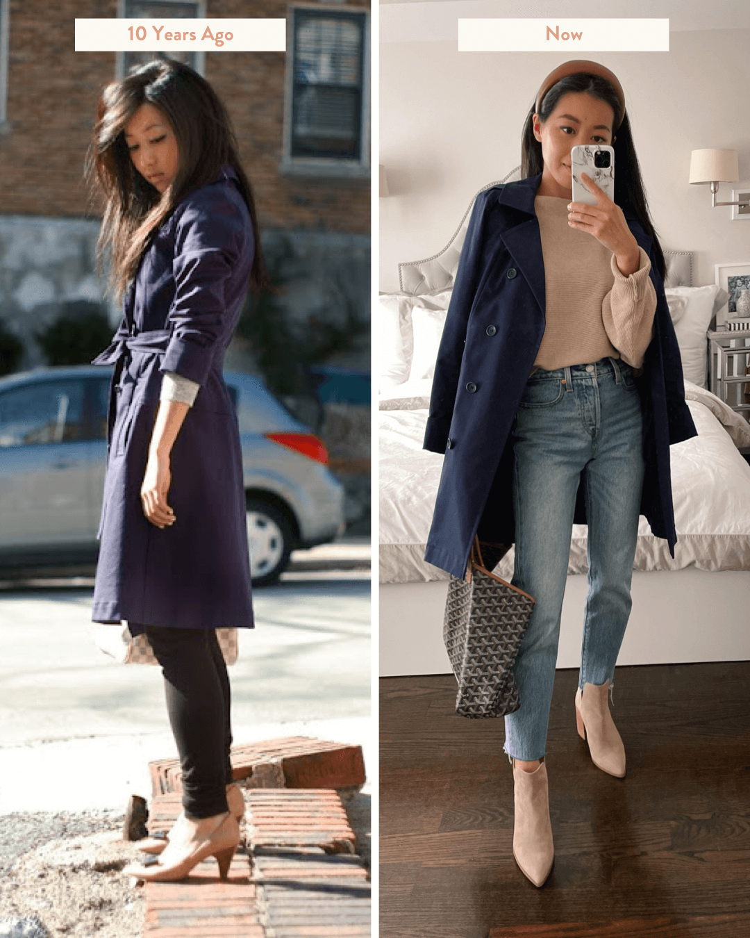 Jean! This was so fun. I’ve been following you since the beginning of your journey, and even though I’m older (48) come back to your blog time and time again for wisdom 🙂 This was great timing, as I’m considering a good winter coat and was tempted to buy one in a color instead of Camel! Thank you! I won’t invest quite as much since I’m in CA and live in cotton dresses most of the year, but really appreciate the reminder to stay classic with the color, and not to hem above the knee. Beautiful to see your past photos compared to now!