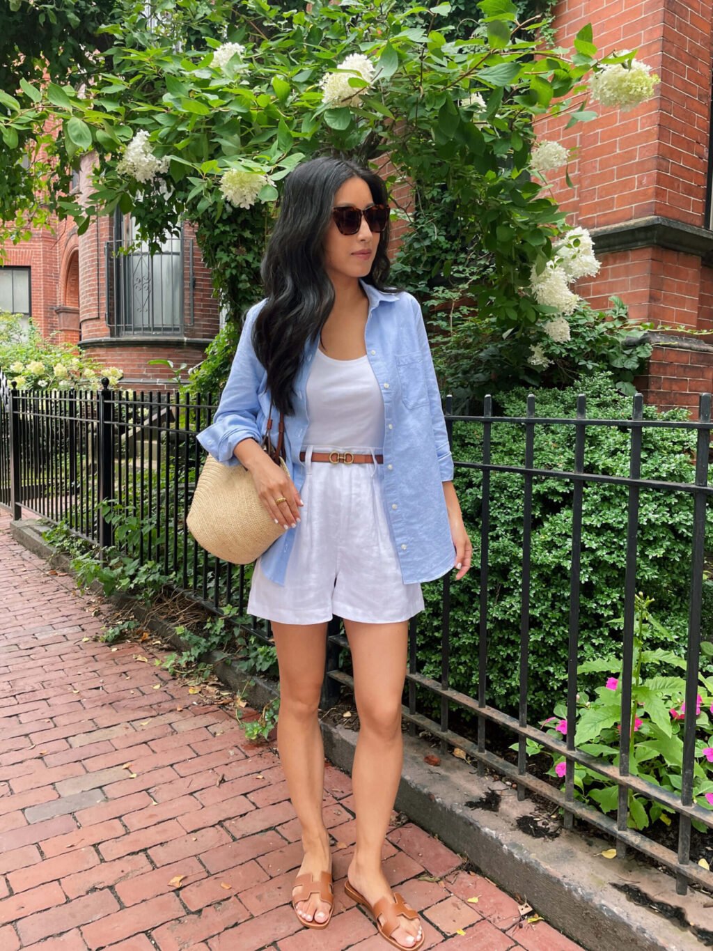 I’ve enjoyed working on capsule wardrobe posts in recent years, and one piece that’s in the lineup every time is a classic button down shirt. The two solid quality options that I usually recommend: Sézane Tomboy shirt in a subtly-textured medium weight cotton, and the Everlane silky cotton shirts in a much lighter-weight cotton (nice for warm weather and on sale this weekend!). The cut on both of these shirts is relaxed – not fitted, not oversized.