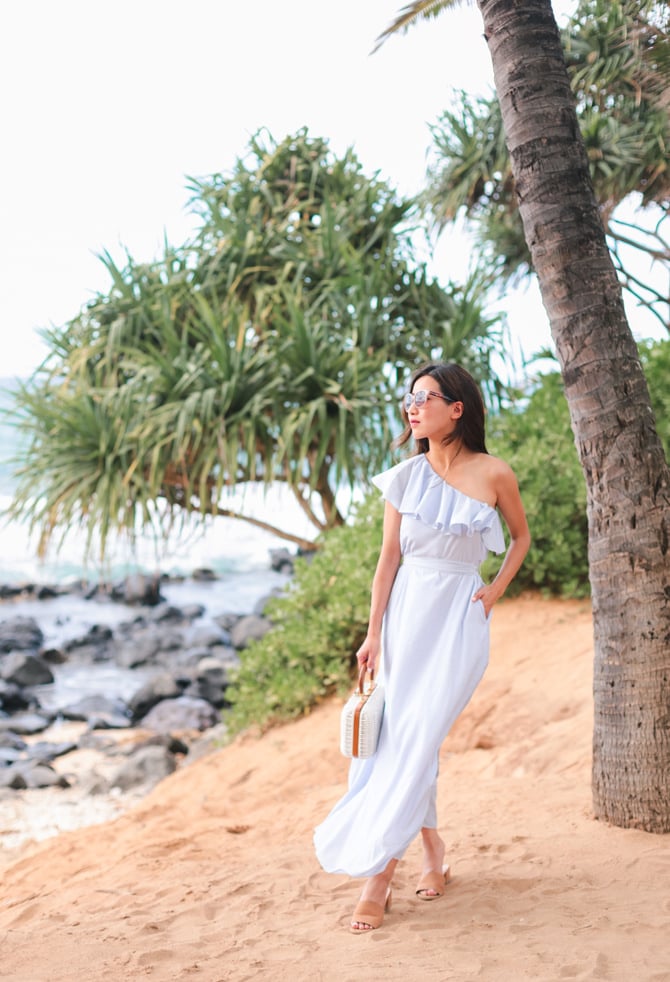 Mama’s Fish House // Ruffle Stripe Maxi Dress + Vintage Bag